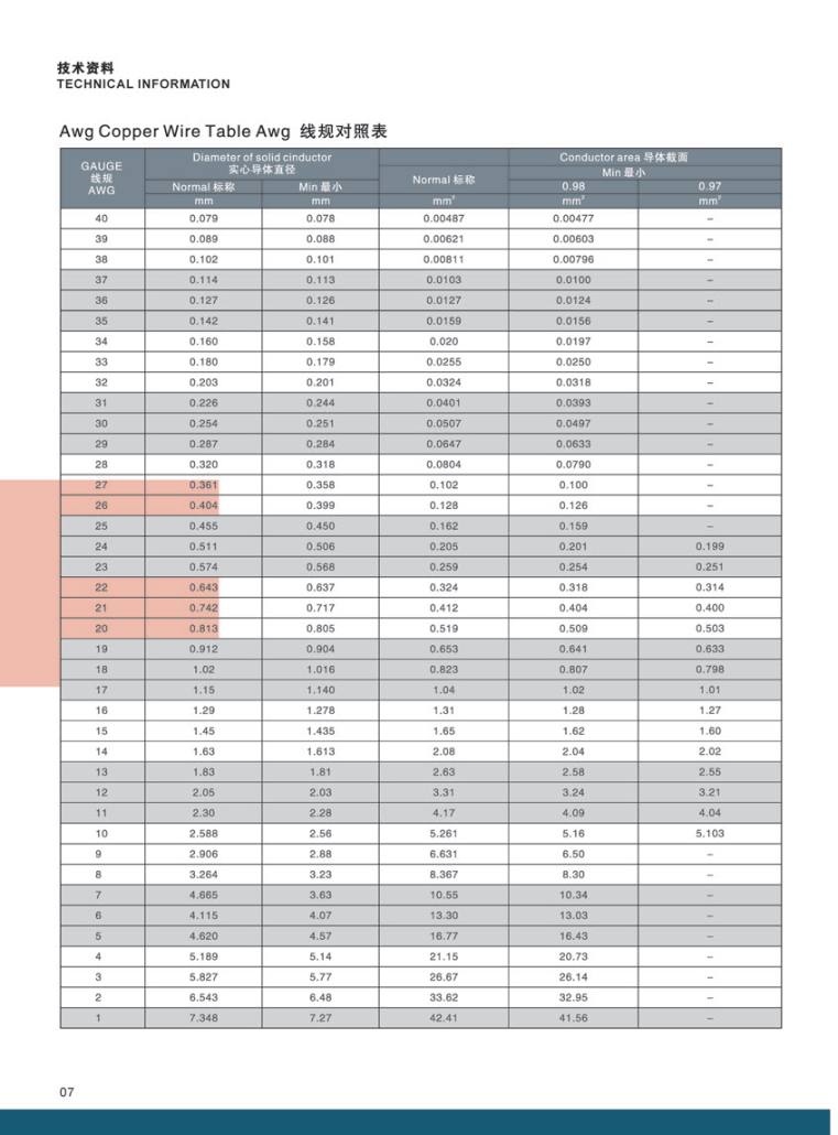 AWG COPPER WIRE TABLE AWG